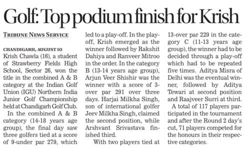 Krish Chawla performed outstandingly in the recent golf tournament, displaying remarkable skill, consistency, and sportsmanship qualities throughout the event. His dedication and hard work were evident in his performance, and he received recognition as one of the best young golfers.